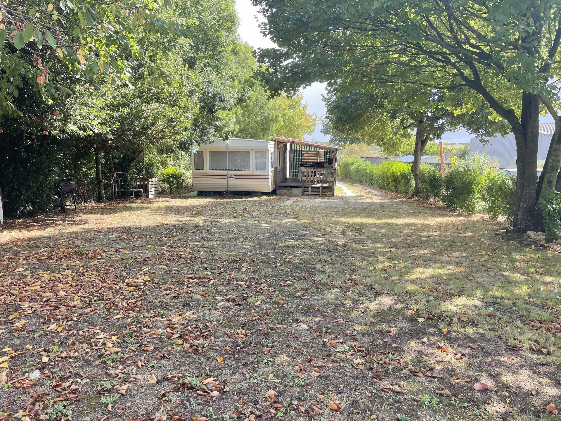 Terrain constructible avec 2 mobil-homes, sur une belle parcelle de terrain arborée avec l'électricité et l'eau