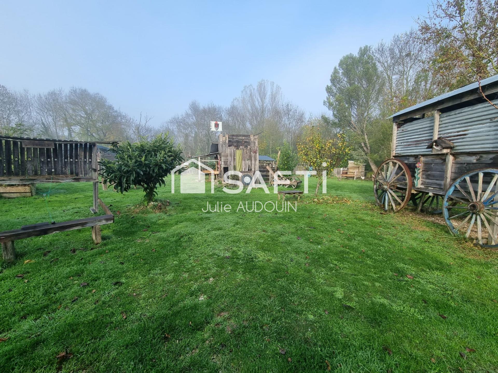 La propriété dispose de nombreuses installations fonctionnelles et sécurisées : jeux en bois pour enfants, cabane et abris adaptés aux animaux, parking attenant avec plusieurs places, scène extérieure idéale pour des représentations musicales ou théâtrales, potager soigneusement aménagé, ainsi qu’un étang naturel apportant charme et biodiversité.