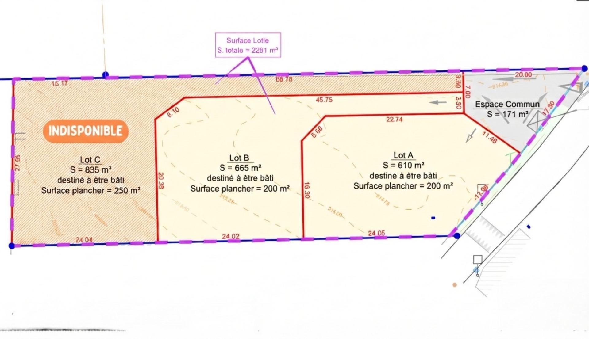 Aperçu de ce terrain à vendre de 665 m²
