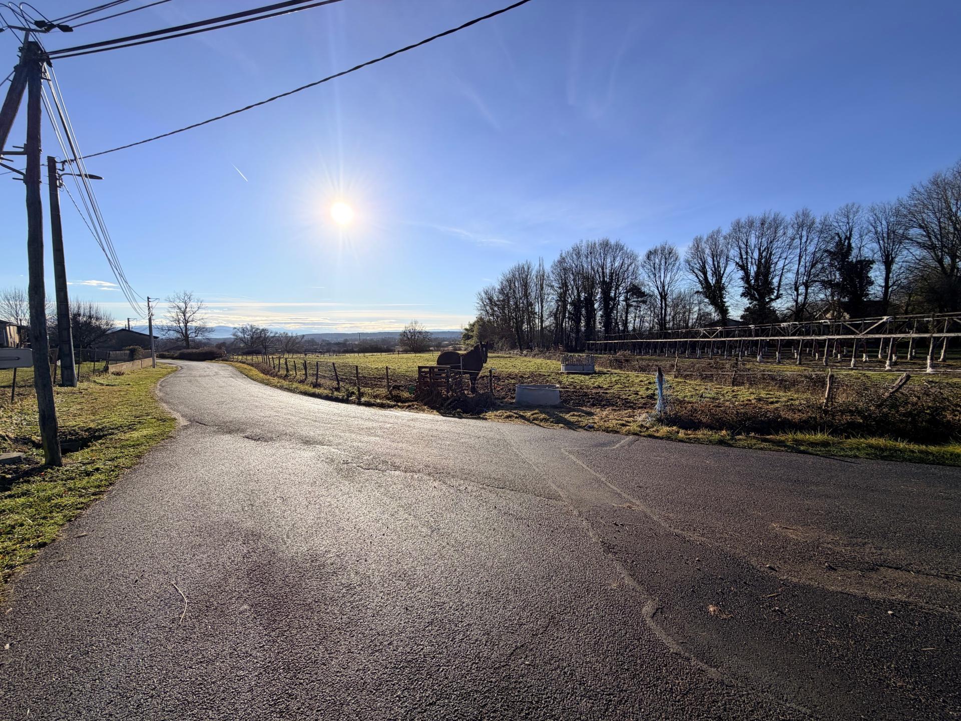 Le terrain est borné et non viabilisé ; l’ensemble des réseaux (eau, électricité, télécoms) se trouvent en bordure de route, facilitant les raccordements.