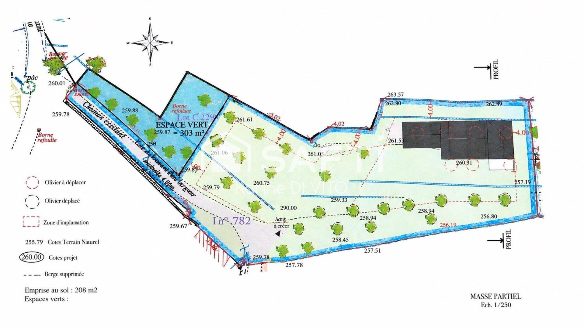Un permis de construire déposé en mairie purgé de tout recours, avec possibilité de modifications selon votre projet. Vous pourrez envisager la construction d’une maison avec emprise au sol d'environ 309 m2, laissant place à de belles perspectives d’aménagements et de nombreuses possibilités de construction.