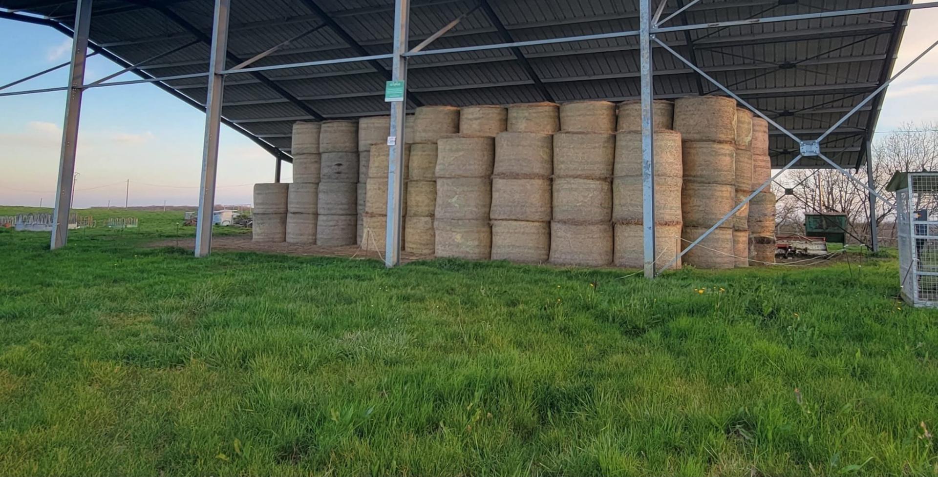 Un hangar de stockage complète les bâtiments agricoles et permet le rangement du matériel, du fourrage ou d’autres besoins logistiques.