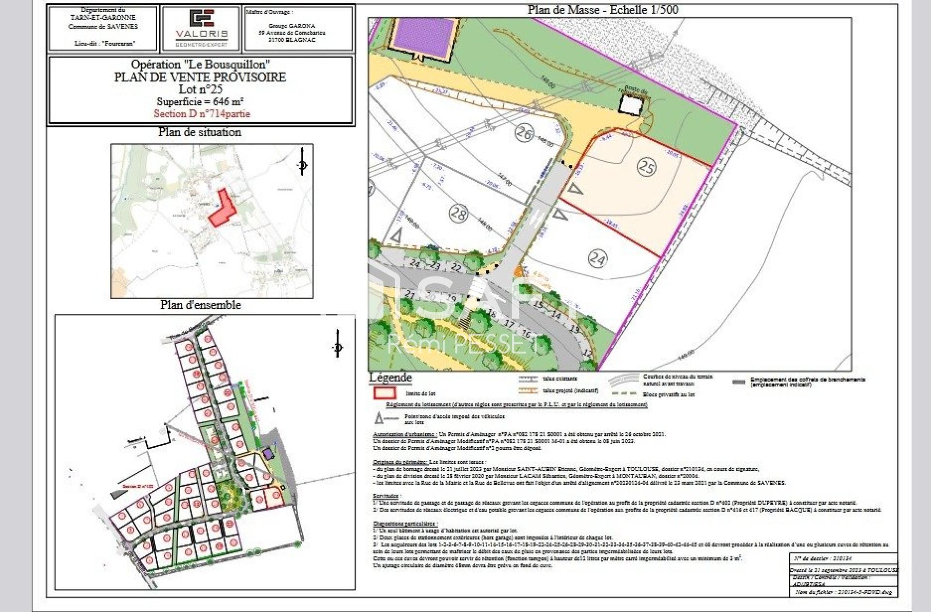 S'étendant sur une surface de 646 m², ce terrain, identifié comme LOT 25, constitue une toile vierge pour concrétiser le projet de construction de votre résidence sur mesure. Baigné de lumière naturelle et offrant un espace généreux, ce terrain présente un potentiel infini pour réaliser une maison à votre image, où chaque détail sera pensé selon vos préférences. N'attendez plus pour saisir cette occasion unique d'ériger un foyer personnalisé dans un environnement pittoresque et pratique à Savenès.