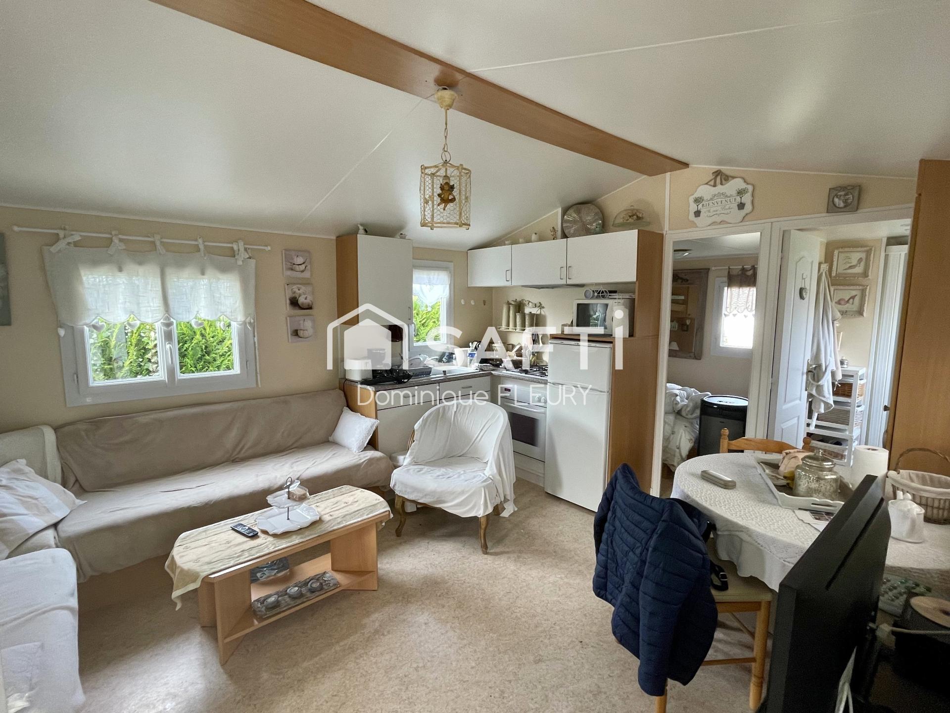 Situé à 3 km de la mer vous profiterez d’un terrain de loisir clos de 221 m2 avec son Mobil’home tout confort et tout équipé, exposé Sud-Est. Dans un Parc Résidentiel de Loisir offrant divers activités estivales durant la saison. Piscine ouverte de Juin à Septembre. Mobil’home de 35m2 qui comprend : une pièce de vie avec cuisine, 3 chambres, salle d’eau et WC indépendant, terrasse couverte et semi fermé + un chalet bois de 15m2 aménagé avec douche et WC.