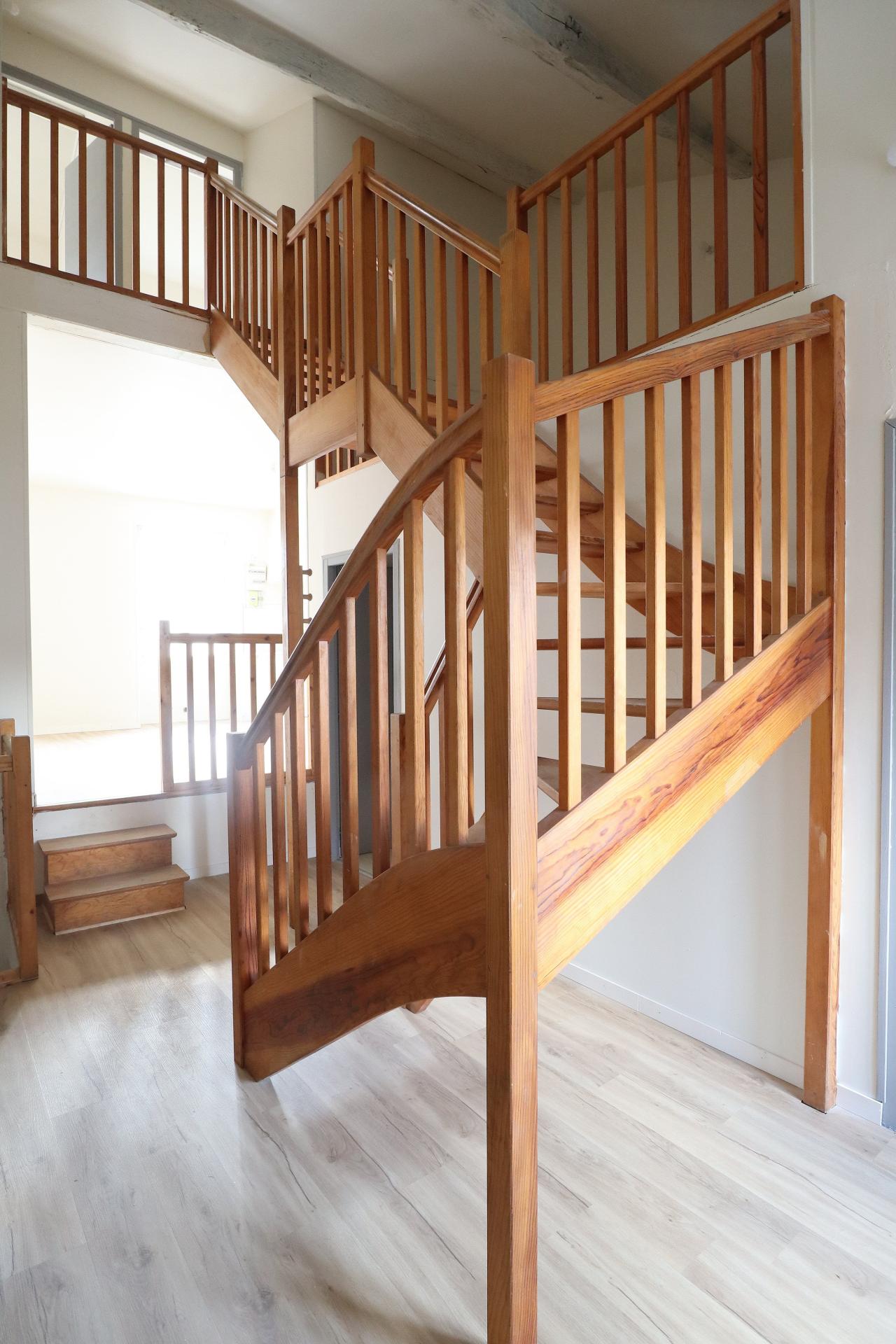 Situé 77 grande rue à Sauzé-Vaussais (Sauzé-Entre-Bois), cet appartement, au 1er étage du bâtiment, dispose d'une cour partagée + un box privé de 9m2.