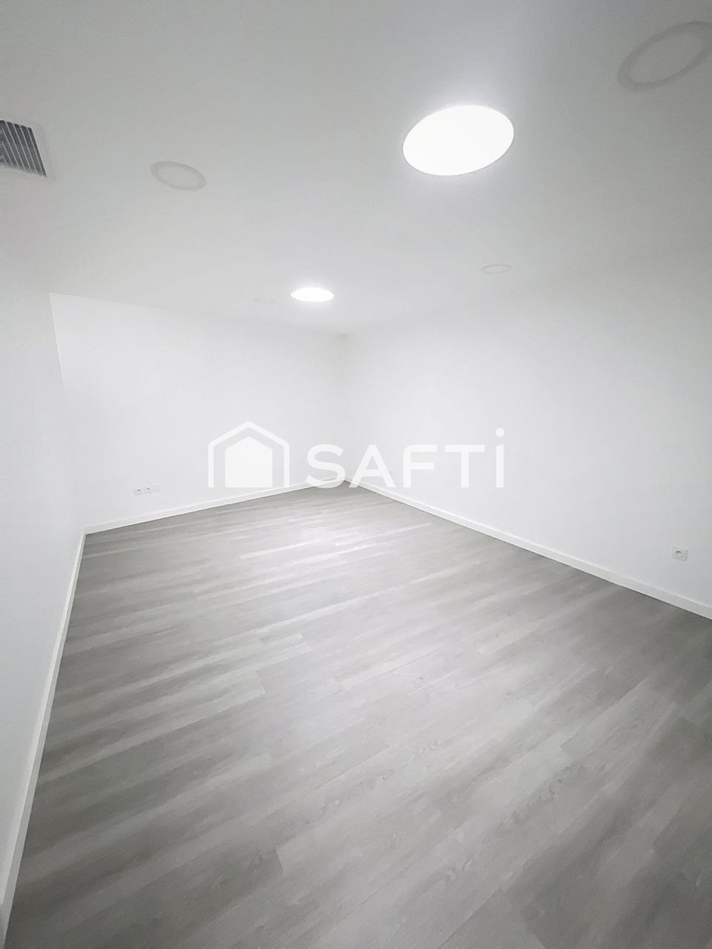 Cet espace bureau se compose de 4 bureaux dont 2 avec puis de lumière (pas de fenêtre) idéal pour salles de réunion ou coworking, un hall pouvant servir de salle d'attente ou de 5ème bureau, une cuisine équipée (espace détente), une salle d'eau et 2 WC.