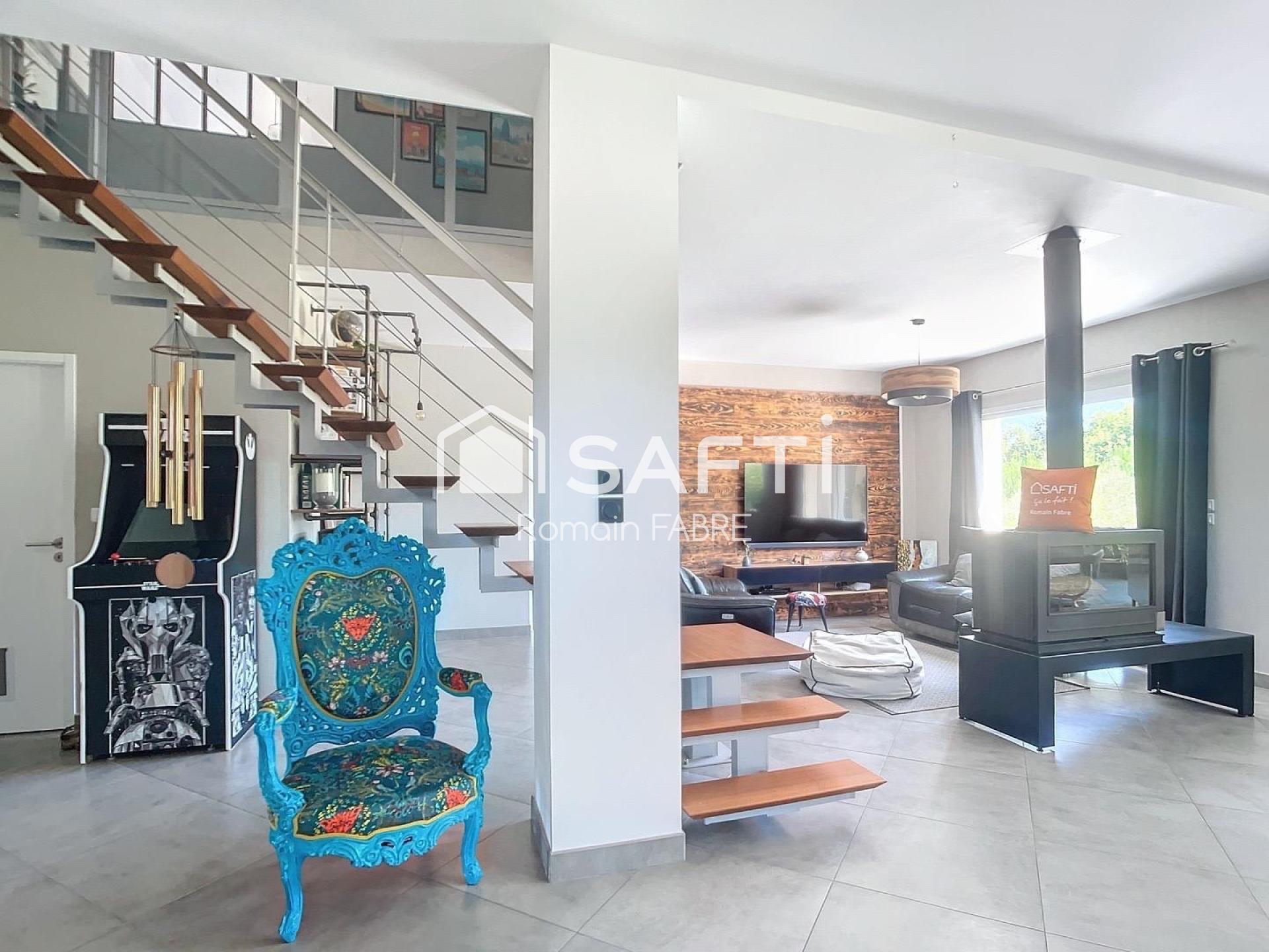 Cette maison d'architecte de 2007 se distingue par sa superbe suite parentale avec dressing, ses chambres spacieuses dont certaines avec salle de bain attenante, une cuisine ouverte entièrement équipée. Bénéficiant d'un pack Air eau pour le chauffage au sol et de panneaux photovoltaïques, elle offre un confort moderne et écologique. Un bien d'exception où confort et qualité de vie se conjuguent harmonieusement.