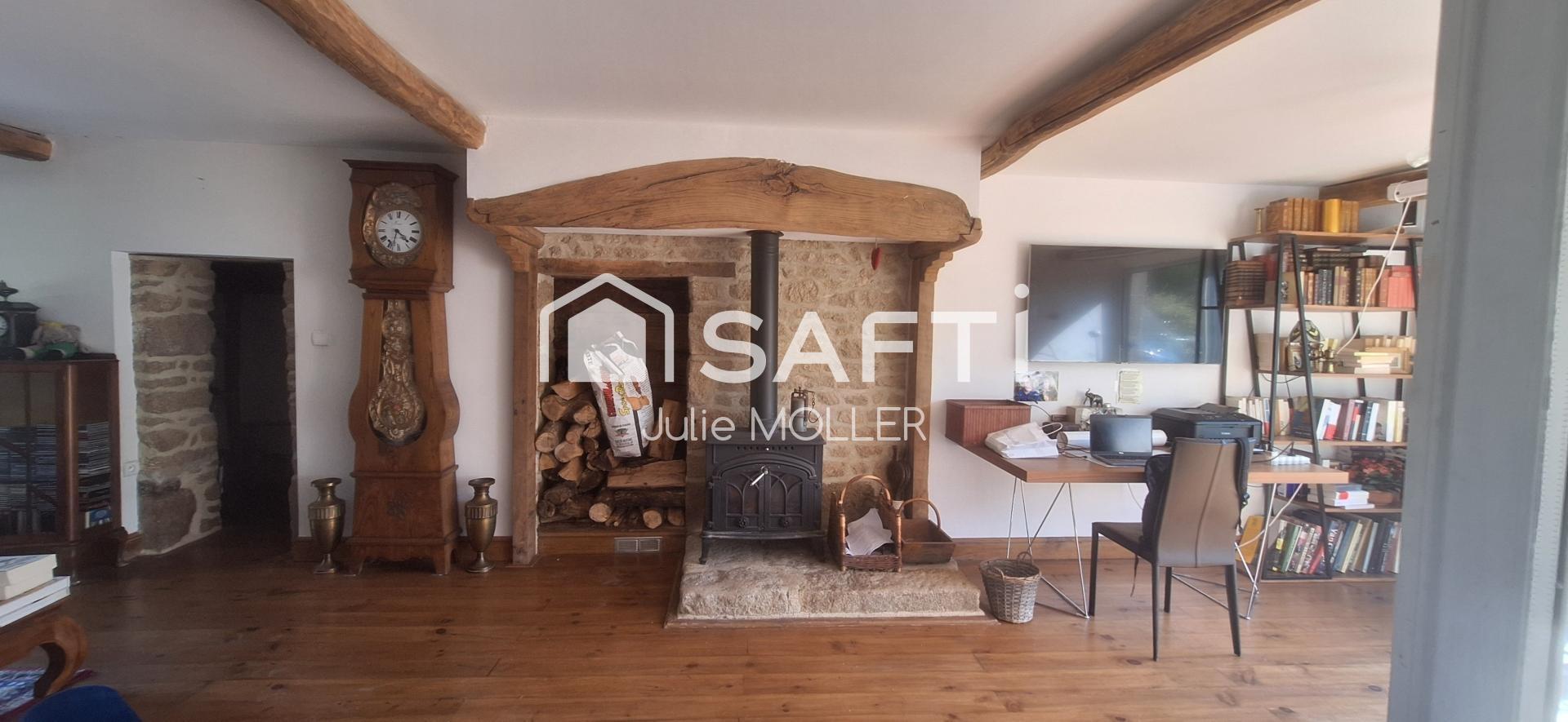 Côté confort, la maison bénéficie d’un DPE E et d’un chauffage bois + électrique, alliant authenticité et économies d’énergie.